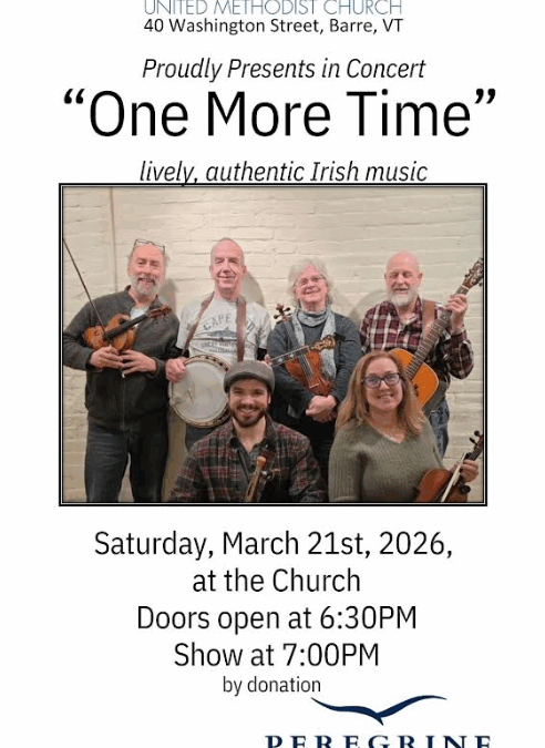 Concert in the Sanctuary by pastorrae | Feb 27, 2026 | Home Page, Uncategorized | 0 comments “One More Time” Lively, Authentic Irish Music Saturday, March 21st Doors open at 6:30PM Show at 7PM By Donation Submit a Comment Cancel replyYour email address will not be published. Required fields are marked *Comment * Name * Email * Website Save my name, email, and website in this browser for the next time I comment. Δ